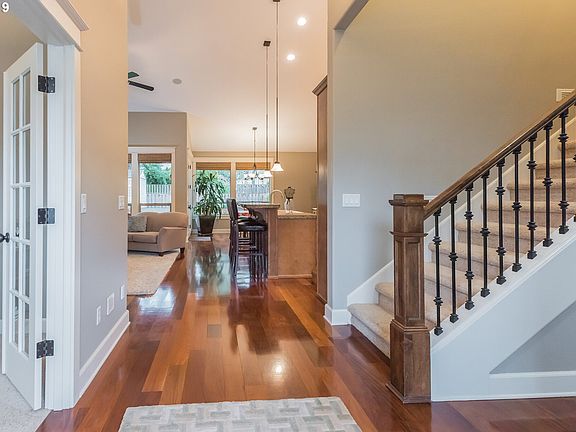 Quality craftsman home w/main lvl master ste, open flr plan, great room w/Brazilian walnut hrdwds, surround sound,gas fireplace, central kitchen w/JennAir ss appls. 3 car tandem garage, central vac, a/c, and 3 zone HYBRID HEAT/COOL SYSTEM (save $$). Minutes to I-5 & on green belt! Ptld address,Tigard schools, unincorp Wash. County (lower taxes!). Incredible location. Close access to shopping, I-5 and 217, Garden Home, Washington Square.
