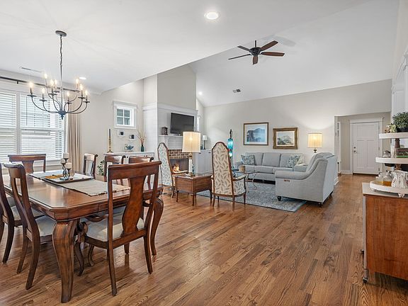from private drive in the back for home owners. Additional features include real hardwood floors, builder interior design features, stone countertops throughout. Fenced side yard good for letting you or the pups out. Upgrades include installed HVAC in 2022 to improve efficiency and reduce energy cost. Installed second water meter 2023 to improve cost of water for landscaping. Installed precautionary sump pump for a worry-free crawl space. Community amenities include a pool, clubhouse and a large pavilion surrounded by nature in the back for large family gatherings. Come see this beautiful home in a highly desirable neighborhood with community spirit.