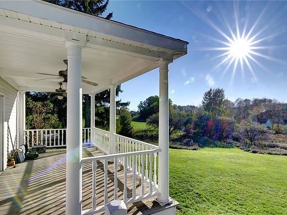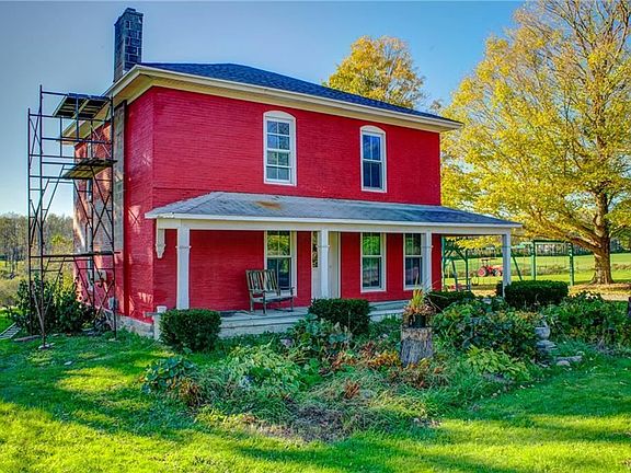 Country living -Updates throughout a charming 4 bed 2 bath home. Side back door w/ partial wrap porch leads into large mudroom w/ storage, dining area w/ large country kitchen. Back room possible extra bedroom rec room or office w/ French doors leading to back porch. Meander to front of house and find large closets w/first flr laundry and newly remodeled handicap bath. Living room has newer 3 pain windows, side door to front porch, beautiful staircase to beds. Landing at top is small library w/ lrg book case new carpeting. winding hall leads to master bed w/ French doors w/ porch view of the land, incl. master bath. Updates incl. furnace, roof windows, 1st flr bath, brick repointed/painted to be finished, porch rails, laundry room, other work to be completed. Some furniture negotiable.