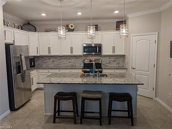 This stunning three-bedroom, three-bath lake view home is a must-see! The kitchen features granite countertops, a marble backsplash, a walk-in pantry, and stainless steel appliances. Enjoy tile flooring throughout the main living areas and brand-new vinyl plank flooring in the bedrooms. Located in a gated community offering resort-style amenities including a pool, jacuzzi, steam rooms in both men's and women's locker rooms, a fitness center, clubhouse, children's play area, tennis courts, pickleball courts, and bocce ball courts. Ideally situated near top-rated schools and in a prime location.