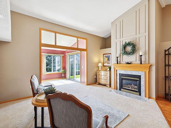 This immaculate one-level townhome in the highly sought-after Elm Creek Courts and Clubs neighborhood is move-in ready! The open floor plan boasts a vaulted living room with interesting architectural details that provide upper display areas. The living room's beautiful gas fireplace and mantel command attention. This room opens into a bright east-facing sunroom that leads to an outdoor patio. Three solar tubes light up the bathroom, kitchen and dining area. The kitchen's upgrades include stunning granite countertops and some appliances. Updated furnace and A/C (2017). The two-stall garage has extra storage in a spacious corner closet, cabinets and in the rafters accessible by a pull-down ladder. Conveniently located near grocery store, restaurants, shopping and walking trails. See supplements for owner's list of improvements.