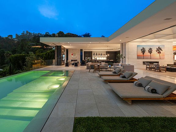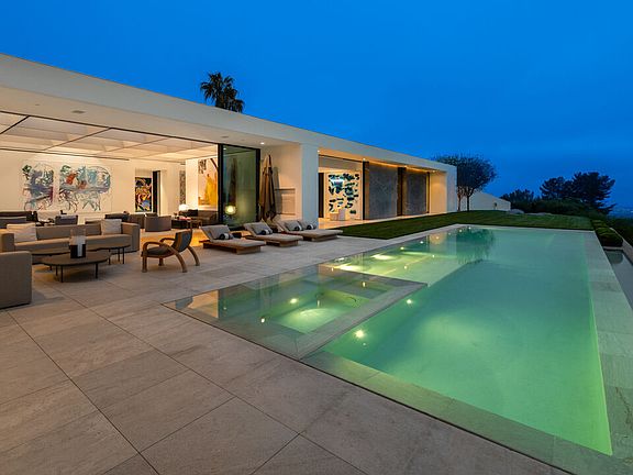 A stunning piece of architecture designed by XTEN Architects and recipient of the AIA Los Angeles Award for most influential architecture of 2020. Inspired by Stanley Kubrick's Space Odyssey and set on a promontory on the most prime cul-de-sac in the Bird Streets. Enter through a private courtyard into high ceilings infused with natural light, walls of glass and polished terrazzo floors. Stylish and sophisticated with incredible walls for art, the property offers jetliner views overlooking Los Angeles to the ocean. Large living room, incredible kitchen/family room, professional theater, gym, dance studio, office, and much more. There is an incredible primary suite with dual closets and huge spa-like bathroom with steam shower and soaking tub. The entire house overlooks a spectacular infinity pool and large grassy yard. Additional amenities include an 8-car subterranean showcase garage. Show to pre-qualified clients only.