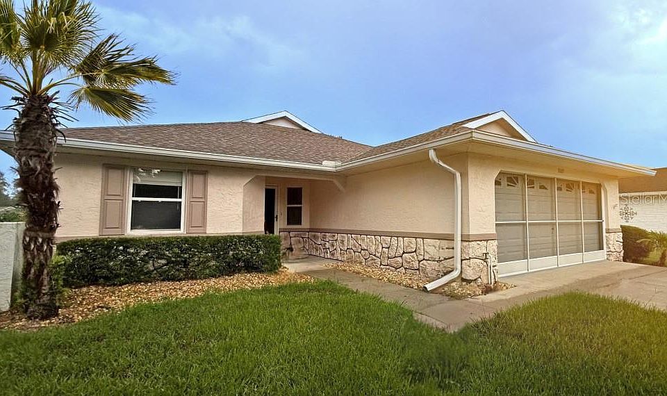 Auction Property. 2BR/2BA home nestled in the vibrant On Top of the World (OTOW) 55+ gated community, this home in the Williamsburg neighborhood with outdoor entertaining offers an unmatched lifestyle in a place where the cool kids retire, surrounded by endless activities, resort-like amenities, and a friendly community. Gated access ensures comfort and security within the community. Features a large, 524± sf paved concrete area, perfect for outdoor entertaining. Golf cart access to shopping centers, clubhouse, pickleball courts, pools, and golf courses. The home is 2,295± sf under roof with 1,777± sf living area with an open floor plan, enclosed lanai, and a 452± sf attached two-car garage. The lot size is .17± acres. The roof was replaced in 2018±. Built in 1997± with concrete block stucco. The HOA fee covers the cost of maintaining common areas, landscaping, swimming pools, tennis courts, clubhouse, and elevators, along with basic lawn maintenance, semiannual exterior pest extermination, and garbage receptacle. This is a 99-year leasehold property, providing long-term stability with a portion of HOA fees allocated towards the land lease. Property #: DG1439. 10% Buyer's Premium.