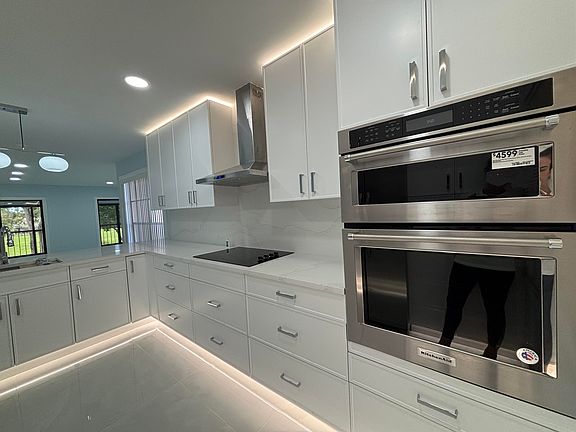 Walk into your newly remodeled 2 bed/ with den area...Enjoy the spacious open plan condo with plenty of room for entertaining, tv area and dining. Gorgeous white porcelain tile throughout and pristine carpets in the bedrooms. Upgraded kitchen includes all new appliances, built in oven/microwave. Separate cook top..Plenty of countertop space for gourmet cooking.. Master bath has stunning walk in shower , double sink vanity, back lit mirrors and enhanced by tile that runs up to the ceiling . Guest bath also has abeautiful walk in shower and vanity.Master bedroom has massive amount of closet space , capable of housing the largest wardrobes ...Beyond your living space is an extra long patio with glass sliders where you can enjoy your early sunrises....this unit is a must see.....