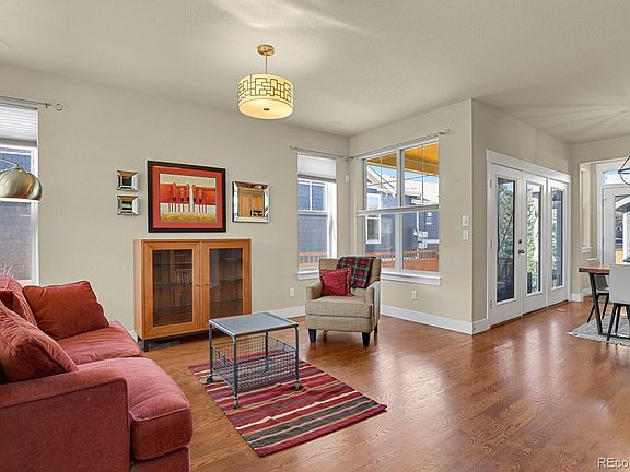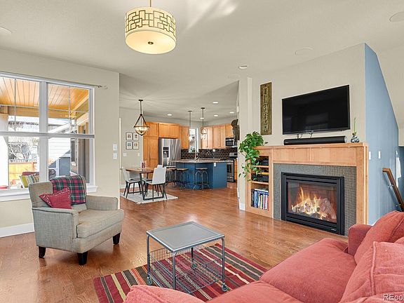 Check out this beautiful home in Central Park, just steps from the Sand Creek and Westerly Creek trail systems, with easy access to the light rail system, I-70, and DIA. Two stories, three bedrooms, 3.5 baths, full finished basement, 2 car garage. Open main level with gorgeous real wood floors, a living area with gas fireplace and wall-mounted TV, a huge eat-in kitchen with an island, five burner gas range, pantry with rollout shelves, upgraded granite, a dedicated office area with built-in L-shaped desk, and a powder room. The primary suite includes a large bedroom with sitting area, vaulted ceilings, an upgraded five-piece bath, new ceiling fan, and walk-in closet with Elfa organizers. The second bedroom upstairs has its own private full bath, a ceiling fan and room darkening blinds. The laundry room is upstairs and the LG washer & dryer set are included (the laundry room is set up for either a gas or an electric dryer). The basement includes a large rec room with egress windows, a spacious bedroom with an oversized egress window, a 3/4 bath, a utility room with sink, and lots of storage. There's a furnace with humidifier, central AC, a tankless water heater, and a sump pump. The custom blinds throughout can be opened and closed from either the bottom or the top. This home is absolutely designed for outdoor living with a covered front porch that faces a neighborhood park, multiple backyard living spaces including a covered back patio, garden boxes, new fencing along the front and back, and both yard and garden sprinklers. The roof was replaced in 2024 with impact-resistant shingles with a 50-year warranty, the gutters were done at the same time, and the exterior was painted in 2021. Central Park is a wonderful master planned community with quiet streets, lots of parks, playgrounds, open spaces, and several pools. This home is better than new! Schedule a showing today.
