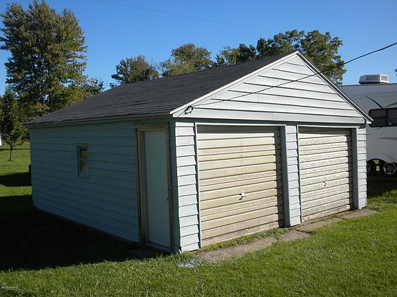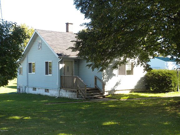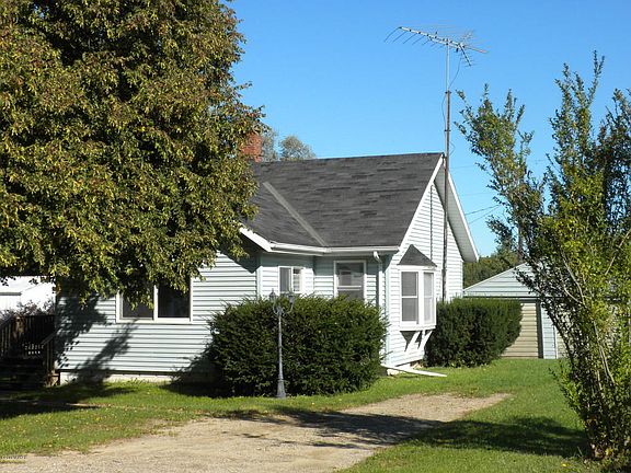 One and a quarter acres with updated vinyl sided house and 2 car garage. Kitchen has new flooring & counters, new paint in all rooms, new flooring in the living room and bedroom. Newer bath has ceramic floor and tub/shower. Replacement windows and Bay/Bow window. Entry to front has a nice large porch and interior has inlaid tile floor. Back entry, 6 x 6, is plumbed for washer & dryer but is not heated or included in sq.ftg. Large storage shed. Wonderful acreage with plenty of room for a large g arden.