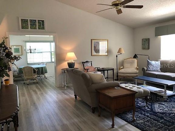 Outstanding opportunity to own this popular extended Jefferson model. Soaring vaulted ceilings, skylights and stunning luxury plank floor add wow to your first impression of this majestic home. Located on a quiet 1 block long street in Williamsburg, this beauty has so much to offer! Newly painted outside, freshly painted inside with marine blue cabinets in the bright kitchen with stainless appliances and nook overlooking Williamsburg's spacious front to back, side patio, so great for entertaining. Skylights accent the formal dining room. Absolutely huge great room filled with light from the full side windows. The great room opens onto the extra deep year round glassed in lanai.Very private spacious master suite has brand new totally spectacular master bath with quartz counters, custom linen tower with roll-outs, huge walk-in closet and 4x5 ft. glass walk-in shower. Guest wing has its own bath on the other side of the house. Study/bedroom 3 has a deep closet and plenty of room for working office at home. Williamsburg is an active neighborhood tht holds community gatherings throughout the year. Great location, idway to the recreation center and its Olympic size outdoor pool and workout center, pickleball courts and miniature golf course, woodshop, library, pro- shop, Tortoise and Hare private golf course; and the state of the art Arbor fitness center, indoor Olympic size pool and outdoor walking pool, plus club rooms, dance studios, billiard and game rooms, tennis courts and Long Leaf Nature Trail.