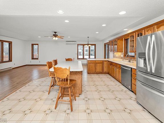 Discover this charming rambler in an established West Fargo neighborhood! This 4-bedroom, 3-bath home offers over 2,500 sq. ft. of well-designed living space, an oversized 2-car attached garage, and a fully fenced yard with a wood deck, raised garden beds, storage shed, and a spacious corner lot. The main floor features two living areas, one that includes a cozy propane fireplace, plus an open-concept eat-in kitchen with a large island, stainless steel appliances, ample countertop space, and cabinetry storage. Enjoy the convenience of 3 main-floor bedrooms, including a primary suite with a private half bath. A mudroom-sized coat closet is perfectly situated near the garage entry. The finished basement offers versatility with a large family room featuring a wood accent wall, built-in cabinets, a 4th bedroom, a 3/4 bath, and laundry/utility space. Lastly, don't forget the upgraded features including New Shingles, New Flooring, New Paint, and the convenience of being next to Westside Elementary and parks! This home blends functionality, charm, and location—schedule your showing today!