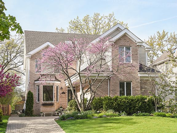 Top tree street location! Handsome brick & cedar house w/attached 2 car garage. High ceilings, an abundance of natural light & hardwood floors throughout. Renovations include gorgeous lower level including rec room, fitness rm, cherrywood wet bar & pristine full finished bathroom. Brick paver driveway leads to inviting front door & foyer w/vaulted ceiling & skylights. Great flow for entertaining. Gracious living room w/bay window & tray ceiling. Versatile dining room opens to the spacious kitchen, breakfast room & family room which overlooks the expansive, landscaped backyard (Hockey rink!). Large mudroom has cubbies & cabinets w/access to attached 2 car garage. The master suite with treetop views has vaulted ceiling, two walk in closets and spacious master bath. There are three additional family bedrooms & two renovated full bathrooms w/high end finishes. Laundry room is conveniently located on 2nd level. Underground sprinklers. Close to town, train, schools, parks & golf course.