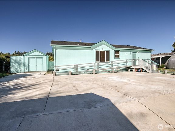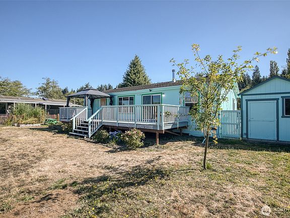 Motivated seller! 100 ft Hoquiam river frontage. Fish out your back door. Open-concept, 3 bedroom, 1 3/4 bath with great kitchen and walk-in pantry. Oversized 12x40 ft deck with gazebo. Newer concrete parking can park 6 cars, aluminum wheelchair ramp, and full RV hookup. Two 10x12 sheds w/lofts--front one is finished w/power and flooring. Smaller shed has lean-to for wood and mower storage. Newer wood stove and fresh interior/exterior paint are just a few of the upgrades. The private backyard is fenced and gated, featuring 4 raised garden beds, fruit trees, grape arbor, 2 golden chain trees, and windmill palm. Quiet seclusion with view out your back door. Only 5 minutes to town—peaceful and move-in ready! Assumable VA loan, ask for details.