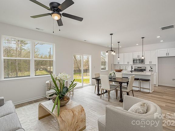 Welcome to Sadler Village, the newest community built by Red Cedar Homes, located just 10 minutes from Charlotte airport & 15 minutes from Uptown. This lovely Elm home includes 3 bedrooms, 2.5 baths, spacious loft, double-car garage & ONLY covered backporch in the neighborhood. Gorgeous SPC flooring throughout first floor, seamlessly connects living, dining & kitchen areas. Kitchen features soft-close, dovetail shaker cabinetry & quartz countertops paired with beautiful tile backsplash that shines next to the stainless-steel appliances. Upstairs are all bedrooms with large closets & spacious loft. Luxurious primary bathroom has tile floors, tile shower walls & framed glass door. Both full bathrooms have beautiful quartz countertops atop shaker, soft-close cabinets & framed mirrors. The useful 2nd floor laundry room boasts a recessed dryer vent. Ready in July 2025!