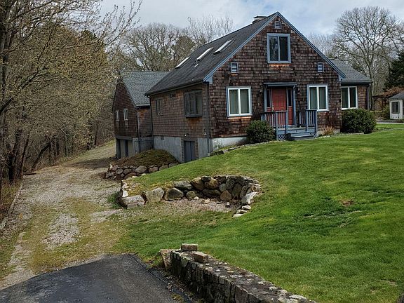 Built in 1977, this family friendly home was once a quaint bed and breakfast. Comprised of 3 bedrooms, 3.5 baths, finished basement and 4 garage bays, it is centrally located with easy access off Cape. The former check in station for the B&B is a free standing building on the property with electricity that offers potential office space, kids room or artist studio. The home was resided in 2014 with Red Cedar Shingles and the roof was new in 2007, additionally a new septic is scheduled to be completed and is engineered to support 4 bedrooms. This home offers ample storage space within the home as well as parking for a boat or RV and front and back driveways. The acre lot also includes an outdoor shower, bountiful Koi pond, and a lovely gazebo for outdoor entertaining. Located close to town beaches, popular restaurants, The Shining Sea Bike Path and conservation walking paths, this property can offer a little something for everyone. Although this home is move in ready for the most part, it is in need of some TLC and updating, such as dry wall patching, paint and flooring.