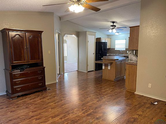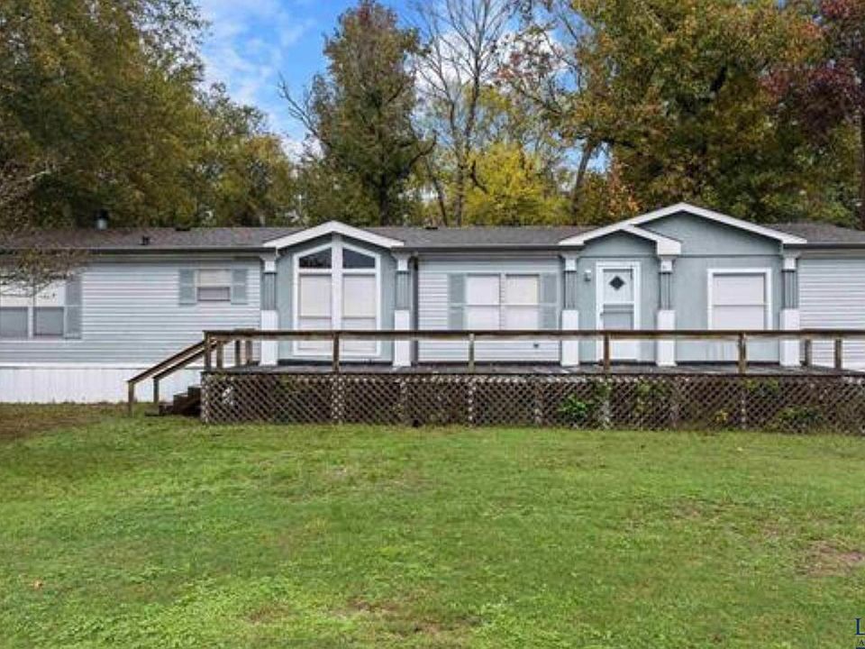 Nice and well-maintained manufactured home on 2 lots across from Lake Murvaul with lake views! Spacious kitchen with ample cabinet/counter space. Island and breakfast bar. Breakfast area. Pantry. Living area with fireplace and second living area that could be used as a game room, office or 4th bedroom. Sizable primary bedroom with 2 walk-in closets. Primary bath includes a garden tub, separate vanities and walk-in shower. Formal dining room perfect for family gatherings. Refrigerator, washer/dryer and TV's stay with the home! Enjoy your morning coffee on the back wooden deck overlooking a large backyard! Storage building with electricity perfect for a work shop or man cave! Let's go look!