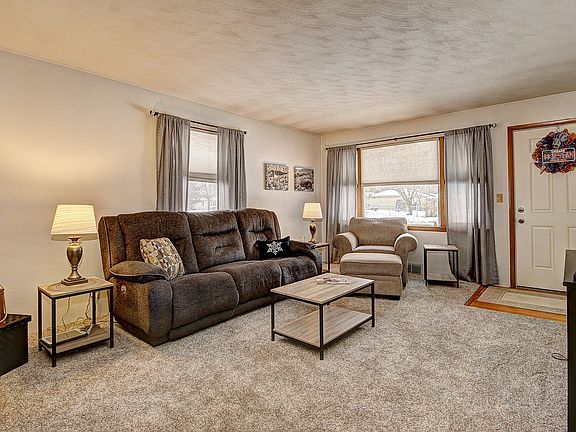 Outstanding ranch with remodeled Kitchen complete with newer cabinets, granite countertops, farm sink, recessed lighting, porcelain tile flooring,and garden door! Hardwood floors entry, hallway, and all Bedrooms! Living Room carpet replaced December '17. New vinyl flooring in upstairs Bath. Great finished and updated Basement Family Room, plus large Laundry/Utility Room AND 14 x 12 unfinished Storage Room with shelving and cabinets that stay. Finished Basement Family Room has been professionally water proofed by PermaSeal. All appliances are included, furnace with nest thermostat and central air new in 2013! Quickset keyless side door lock. Master Bedroom TV and mount stays. Oversized 2 1/2 car garage! 1 year HMS Home Warranty included.