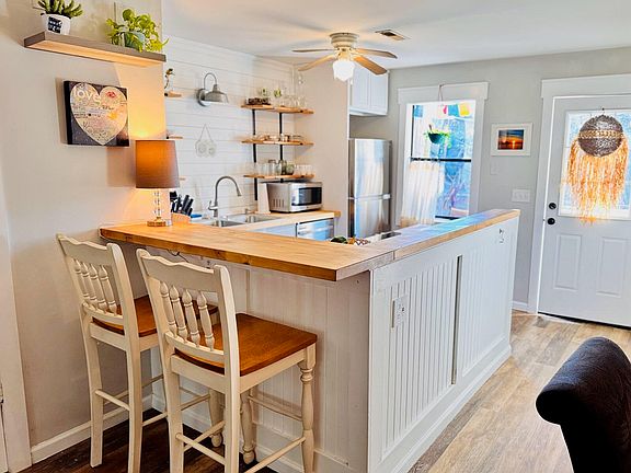Discover this charming pondside condo in the heart of James Island, where comfort meets style. This meticulously maintained end-unit is bright, airy, and thoughtfully designed with modern fixtures and finishes.The contemporary farmhouse-style kitchen boasts butcher block countertops, shiplap accents, and stainless steel appliances--perfect for both everyday meals and entertaining. Recent upgrades include a newer roof, HVAC, and water heater for added peace of mind. Step outside to your fenced back deck oasis, overlooking a lush pond and garden area--ideal for your favorite plants and flowers. The upgraded downstairs bath features a stylish new vanity and wainscoting, while pull-down attic stairs and an exterior storage closet provide valuable extra space.This condo is truly a step above the rest! Mark it as a favorite and schedule your showing today!