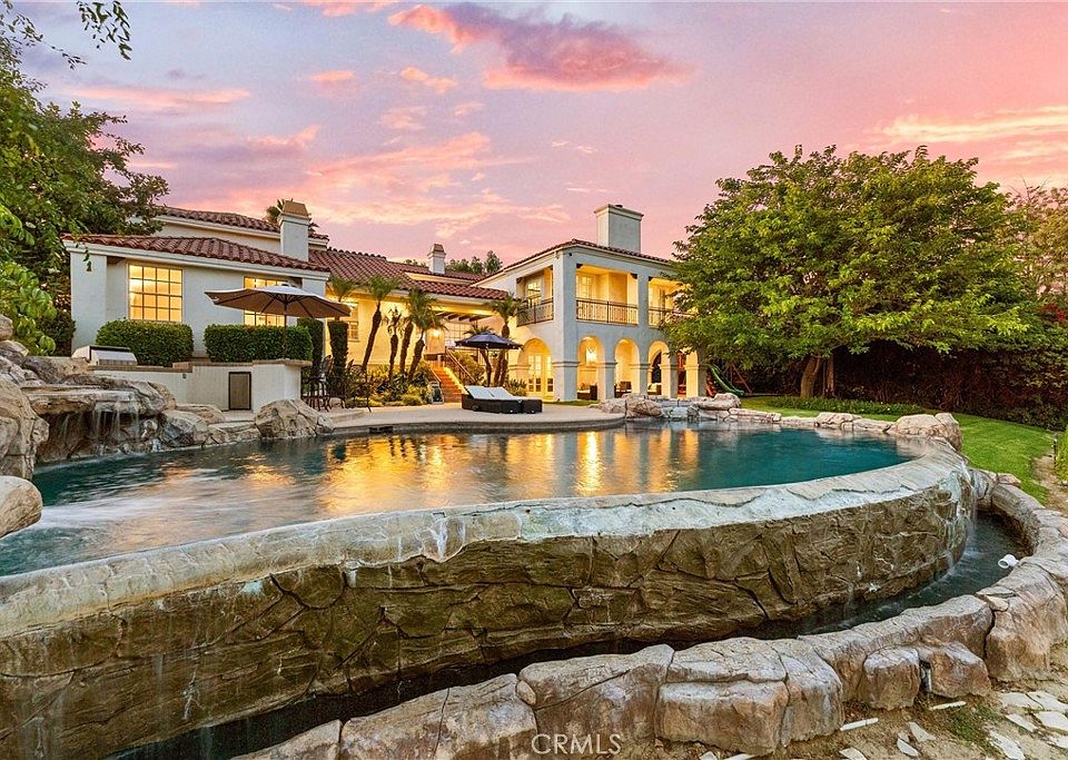 The outdoor amenities include a pool, spa, waterfall, BBQ/bar, and a spacious grassy area with tropical foliage and a variety of fruit trees. Smart home system is wired for high-speed internet to ensure optimal Wi-Fi performance in every room, and centralized control from your smartphone over the air conditioning, pool, automatic gate, security system, and built-in sound system. The direct access garage consists of two 2-car garages, and additional parking providing enough room to park an RV or around 20 cars. Whether you're entertaining guests or enjoying a quiet night in, this home delivers convenience, comfort, and control with cutting-edge ease.