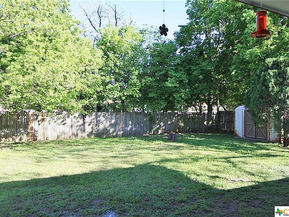 One owner has lived and loved this 4 bedroom, 2 bath North side home for almost 20 years. Sturdy home has beautiful hard wood underneath most of the carpeting in the home and could be refinished to its original state. Home is on a large lot with mature Pecan and Fig trees. Covered front porch and rear patio. Nice 2 car carport at front of home. This home has a garage conversion made into a large master bedroom. Master bath has also been tiled around tub/shower. Kitchen has tiled countertops and backsplash and a large hall pantry. Fresh paint throughout the home and updated blinds. Smart thermostat. New AC unit 5/15. Ceiling fans are located in all bedrooms, as well as the kitchen. Storage shed in backyard. This home is all ready for new owners. All values and measurements are approximate. Curtains in Bedroom 3 & 4 and front porch swing do not convey.