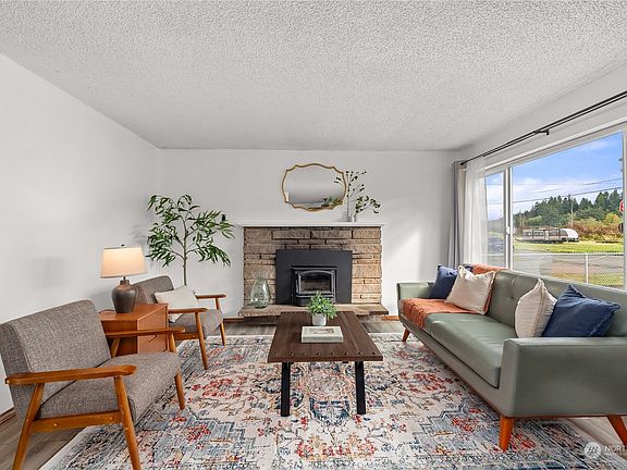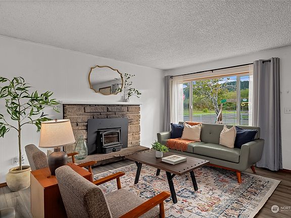 This Hoquiam property is a move-in ready 3 bedroom, 1 bath single level layout. The home's design features an ideal open-concept living space, with a living room, dining area, and galley kitchen. A focal fireplace adds to the home's charm, complemented by seamless gray tone flooring and open shelving in the kitchen. The three bedrooms and full bathroom are located at the rear with good sized storage in each. Sitting on a full fenced corner lot with covered carport, this 960 sqft home is ready for it's new owners!