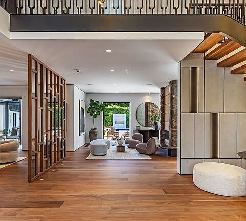 Nestled in one of Beverly Hills' most prestigious enclaves, on just over half an acre, this breathtaking modern estate seamlessly blends timeless elegance with contemporary luxury. The striking white facade, framed by lush greenery and mature trees, sets the stage for an exceptional living experience. Designed by Tim Campbell for both grand entertaining and intimate gatherings, the 13,000 SF home boasts a thoughtfully curated open-concept layout with seamless indoor-outdoor flow. With 9 ensuite bedrooms and 10 bathrooms, this estate offers an unparalleled level of comfort and sophistication. The primary suite is a true retreat, featuring dual bathrooms and dual walk-in closets, creating a private sanctuary of luxury. A detached guest house with a private bedroom provides additional space for visitors or extended stays. Outside to discover a resort-style backyard, complete with a pool, cascading waterfall, and spa. A poolside cabana and expansive patio space invite effortless al fresco dining and lounging, while the large, flat lawn provides ample space for recreation and relaxation. Every detail of this residence has been meticulously designed to offer the finest in modern living, making it the perfect home for those who appreciate style, comfort, and world-class amenities.