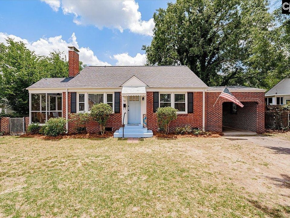 Welcome to the beautiful and convenient Avenues of Cayce. This all-brick 3 bedroom, 2 bathroom bungalow is the perfect place to call home. Recently refinished original hardwood floors and fresh designer paint throughout the main living areas give this home a warm and inviting feel. Step inside and you'll immediately notice the spacious living room with plenty of natural light and a cozy fireplace. The open floor plan flows seamlessly into the dining room making it perfect for entertaining. Through the side door is a screened porch ideal for morning coffee or rocking the day away. The private master suite upstairs is a true oasis, complete with a luxurious en suite bathroom and walk-in closet. The two additional downstair bedrooms are spacious and perfect for guests, kids, or a home office. Step outside and enjoy the large, fully fenced backyard. It's the perfect place to relax or entertain, with plenty of space for outdoor activities and a garden. A rare find in The Avenues is covered parking to keep your vehicles safe and protected from the elements. Home has replacement windows throughout and a roof only two years old. Under termite bond with Terminix. With a prime location in The Avenues of Cayce, you're just minutes from shopping, dining, and entertainment. Don't miss out on the opportunity to make this charming bungalow your forever home.