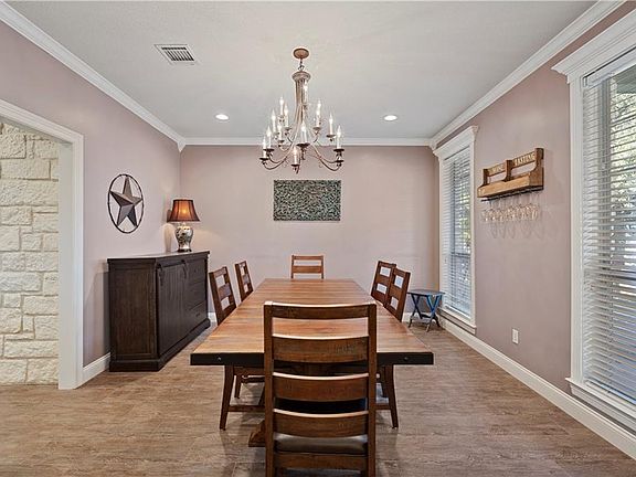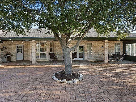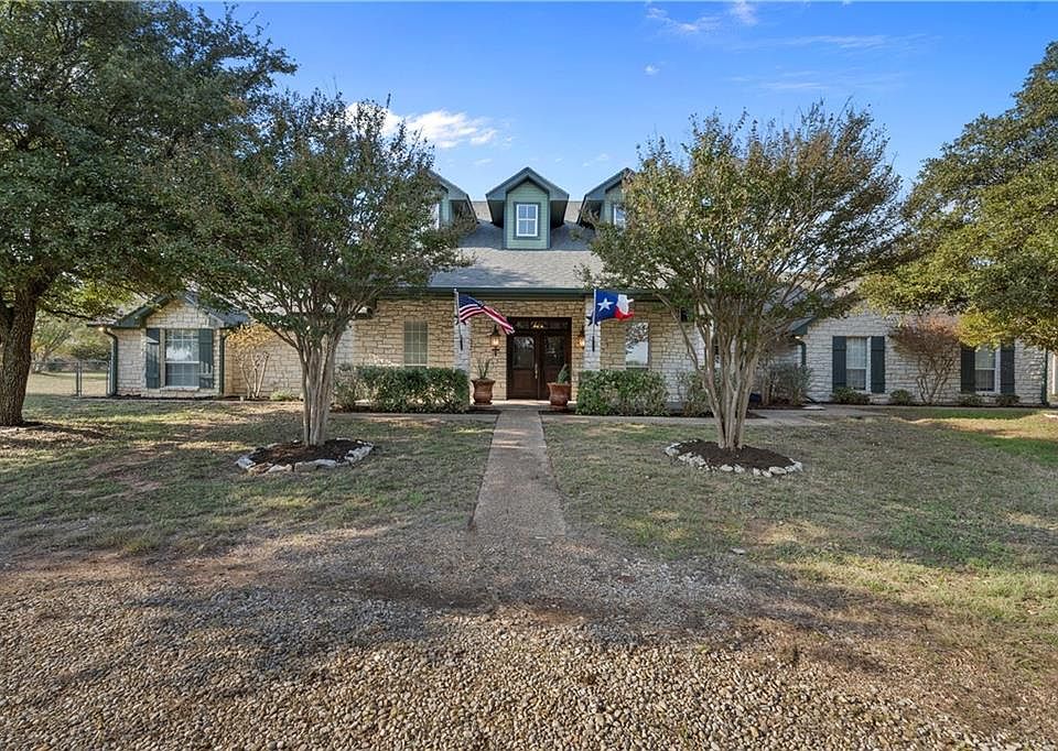 This beautiful Austin Stone home sits on nearly 5 acres reminiscent of the Texas Hill country, and just minutes away from the amenities of the city. Over 50 Native trees, and Natural hedge fencing on the property lines, provide a level of privacy not often found! Leave the city, and its taxes, behind as you enter through the electric gate and drive up to the home. A large front porch, and tall wood double doors create an impressive entry. Inside you will find a large formal dining room to the right and an amazing living space featuring a floor to ceiling wood-burning fireplace, tall ceilings and wonderful views to the back patio and pool. The spacious kitchen features honed granite countertops, a bright breakfast area, large pantry and even a wood-burning fireplace. The master bedroom has space for a separate sitting area and an updated bathroom with separate vanities, soaking tub, glass surround shower, and large walk-in closet. A half-bath, built-in desk, hall and laundry room with sink and folding counter complete the west side of the home. The other side of the home has two additional bedrooms, each with their own en suites and walk in closets. Additionally, a bonus room with vaulted ceilings and built-ins makes a perfect second living/game room with plenty of room to accommodate overnight guests. The backyard is an entertainers dream with a large covered back porch, huge stamped patio underneath beautiful oak trees, swimming pool, and built-in barbecue. Cross fencing allows for private and safe use of the pool. A 2 bay, 1,200sf workshop provides additional parking and plenty of space for all your ranch essentials. The fully enclosed 45' x 22' RV garage has 50 amp service, an automatic circulating cooling fan and a 6 inch concrete pad. For those beautiful Texas nights, there is a stone fire pit perfect for roasting marshmallows. The property is completely fenced with goat wire, and is located in the Crawford ISD!