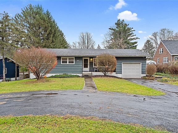 ENJOY ONE-LEVEL LIVING IN THIS CHARMING WEST GENESEE RANCH! This adorable 3 bed/1.5 full bath home is tucked away on a peaceful street in Camillus. The long circular driveway is amazingly convenient and flanked by two separate driveway options at each side of the front yard. Enter the house from the one-car garage or up the concrete pathway and through the front door. A generous living room greets you with awesome natural light and hardwoods (found throughout much of the main floor). A previous 4th bedroom was converted into a smart, formal dining room set beside the clean, bright kitchen. The addition of a vast family room at the back of the home - complete with brick feature wall, stone hearth and wood mantle - adds oh-so-valuable living space. Down the hallway is the full bathroom and 3 spacious bedrooms offering lots of room to spread out! The primary bedroom also features an en suite half bath. Plenty of storage in the walk-out basement, which steps out to a fantastic back yard. Close to highways, dining, shopping, parks and more - don’t miss your chance to see this gem! Showings begin 11/24, no negotiations before 11/30.