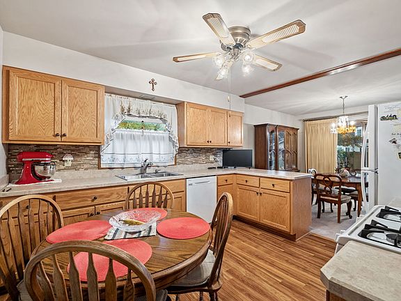 Finished family roomAttached garageSliding patio doorsWet barEat-in table spaceWood laminate flooringNewer cabinets