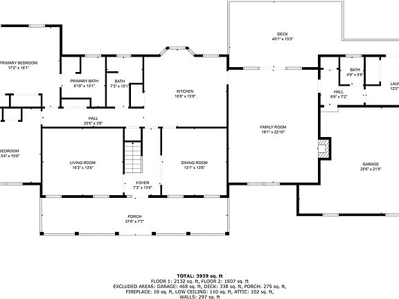 The main level welcomes you with a large foyer that flows into both formal dining and living rooms, perfect for entertaining. A bright kitchen overlooks the expansive deck and opens to a generous family room with plenty of space to gather. The primary suite, located on the main level, includes a private bath, while an additional bedroom and bath provide flexibility for guests or home office space. Practical touches like a large laundry room, additional bath, and access to the oversized garage complete the main floor.