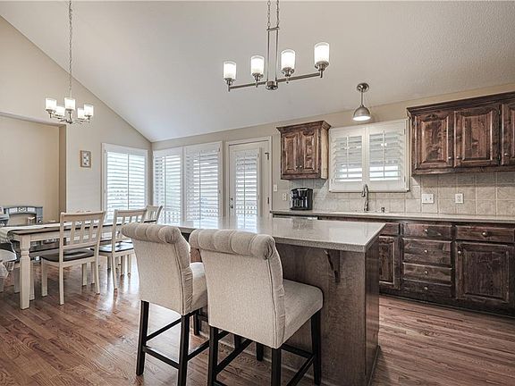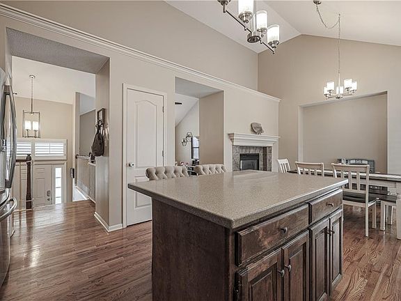 Exceptional 4-Bedroom, 3-Bath split-level home with walkout lot, fenced yard & assumable VA Loan at 2.875%! From the moment you enter, you're greeted by a graceful blend of charm and openness—vaulted ceilings and a breezy layout that instantly feels like home. The dual-sided fireplace creates a seamless ambiance between the lounge area and dining nook, while richly toned flooring adds warmth and style throughout the main level. The generous primary suite offers a peaceful escape, complete with a walk-in closet and private ensuite bath. Downstairs, the lower-level bonus room provides endless possibilities—from media retreat to game room or hobby space—with direct outdoor access. Enjoy the outdoors from the covered back deck or relax on the lower patio, all overlooking the fenced-in backyard—perfect for gatherings, pets, or play. Two exterior storage buildings add valuable utility and organization. This is a rare opportunity: this home offers an assumable VA loan at an incredible 2.875% interest rate—a huge benefit for eligible buyers. Conveniently located with easy access to major routes, close to Fort Leavenworth and Kansas City, it is a standout home with unbeatable value.