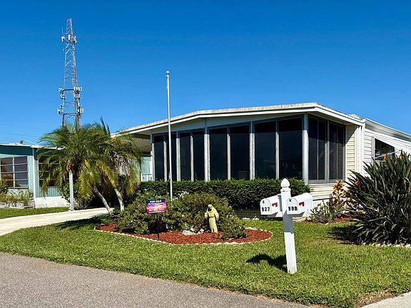 927 Trinidad W -Come for the sunshine, stay for the lifestyle Welcome to your Florida dream home! This beautifully furnished 2-bedroom, 2-bath home is nestled on a picturesque street just steps from one of the community's sparkling pools. With thoughtful updates, charming details, and a layout designed for comfort and connection, this home is ready for you to move right in and start enjoying the sunshine. There is plenty of curb appeal and outdoor living as a stately flagpole greets you with pride, while the long covered carport offers the perfect spot to relax, BBQ, or unwind. The cozy front porch flows seamlessly into a welcoming front lanai-ideal for morning coffee or evening chats. A small, removable ramp provides easy access (not ADA approved), and the tidy shed houses the washer/dryer and extra storage space. Offering year-round lanai comfort the front lanai is a true bonus living space, enclosed with side-by-side plexiglass windows and screens, cooled by a portable A/C unit and ceiling fan, and finished with indoor/outdoor carpeting. Furnished with a sofa and chairs, it's a perfect retreat for every season. The spacious and stylish interior is a step away through the sliders into an L-shaped living and dining area. This home has a mix of carpeting, tile, and vinyl plank flooring. The ceilings are a showstopper-enhanced with beadboard accents that add warmth and character. The living room is arranged for cozy TV nights having a sofa, recliner and occasional chair, while the dining area comfortably seats six and includes a built-in cabinet for storage and display. The well-appointed kitchen is an angled galley kitchen that is both functional and inviting, featuring a pantry, ample cabinetry, spotless countertops, all appliances and even a built-in desk area. It's stocked with essentials so you can settle in immediately with ease. The comfortable bedrooms and both updated baths, offer generous storage with three closets each-including walk-ins. The guest room comes furnished with a queen bed, dresser, and large TV. The guest bath has been newly updated with a tiled tub/shower combo, vanity, and linen closet. The light-filled master suite features a standard/queen bed (with room for a king), ample furnishings, and a spacious dressing area with a walk-in closet, large vanity, new lighting, and linen storage. The private bath boasts an updated shower with glass door and charming wainscoting chair rail. For peace of mind, the A/C is in great condition, and the roof was replaced just three years ago. While two roof panels are missing behind the shed, they have no impact on the home's integrity. Don't Miss Out! With its unbeatable location, tasteful furnishings, and move-in-ready condition, this home is a rare find and price to sell! All agents live in the park, are a wealth of knowledge and also become your neighbors. Take advantage of more than 300 appealing amenities to stay active In Bay Indies with miles of walking and biking trails, three heated pools, hot tubs, tennis, pickleball, bocce, shuffleboard, and a kayak launch and storage. There are a number of clubs, card games, bingo, trivia, concerts, organized dinners and activities if you prefer more tranquil living. Venice is just a few miles away with cultural events, concerts, fishing, boating, golf and beautiful beaches plus search for shark teeth. Venice is known for many restaurants, shopping, newer medical facilities and 3 nearby airports. A casino in Tampa and the Tiger Woods Pop Stroke 2 course putting greens in Sarasota are a must. All listing information given to us is considered appropriate and reliable but should be independently verified through personal inspection by appropriate professionals. Home must be maintained to the Community Prospectus. The lot rent is determined by the Community office and covers all amenities offered including property taxes and lawn maintenance.