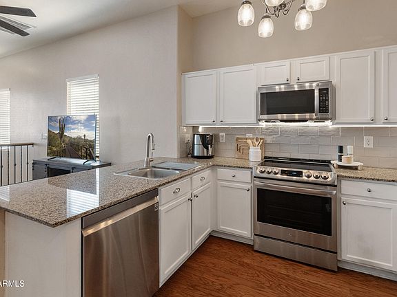 Rare to find a 3 bedroom with 2 car garage at this price! Seller will consider concessions to help buyer buy down the rate! Pride of ownership, upgrades in 2021 Include new refrigerator, stove, dishwasher, microwave, backsplash, lighting and plumbing fixtures in kitchen. Replaced vanities, mirrors, toilets, tile floors in bathrooms, thermostat, water heater, the wood floors were refinished and sealed. Community has pool, play area, multiple ramadas and Basketball court. Close to shopping, schools & easy freeway access.