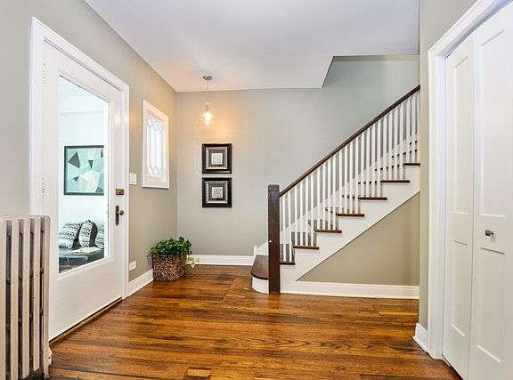 Rehabbed in 2017. Located 1 block to Washington School and 6 blocks to both the Main St. el and metra train, coffee shops, restaurants and more. Hardwood floors throughout and pretty windows. Front enclosed porch , foyer, living room, dining room, kitchen and full bath and back deck complete the 1st floor. Currently the 2nd floor has 4 bedrooms and a full hall bath.. Bessler stairs to floored attic. Full basement with exterior access.