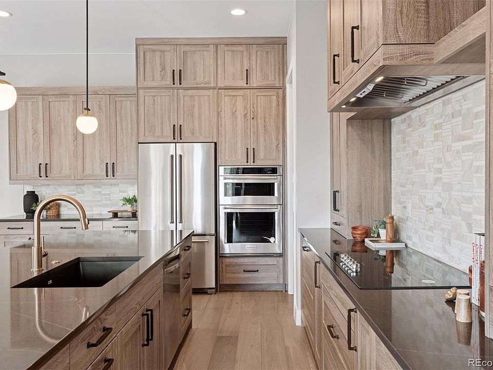 Modern Comfort Meets Energy Efficiency in Berthoud's Harvest Ridge. Discover this beautifully designed 6-bedroom, 4.5-bathroom home by redT Homes, located in the desirable Harvest Ridge community. Built with sustainability in mind, this energy-efficient home boasts a HERS Index of 50 and meets Energy Star, Zero Energy Ready, and LEED certification standards. Step inside to an open-concept layout flooded with natural light, featuring a dedicated study, designer kitchen with custom hood, and butler's pantry. The primary suite offers a spa-like ensuite with freestanding tub, walk-in shower, double vanity, and a spacious walk-in closet. Upgraded finishes throughout include quartz countertops, matte black hardware, designer lighting, and hardwood floors. The finished basement is ideal for entertaining with a large rec room, wet bar with dishwasher and mini fridge, two additional bedrooms, and a full bath. Enjoy outdoor living with a covered back patio, fully landscaped and fenced yard, and a 4-car garage. Just steps from the Unified Trail, new rec center, and minutes from the TPC Golf Course and downtown Berthoud. Don't miss this exceptional home that combines style, space, and sustainability!