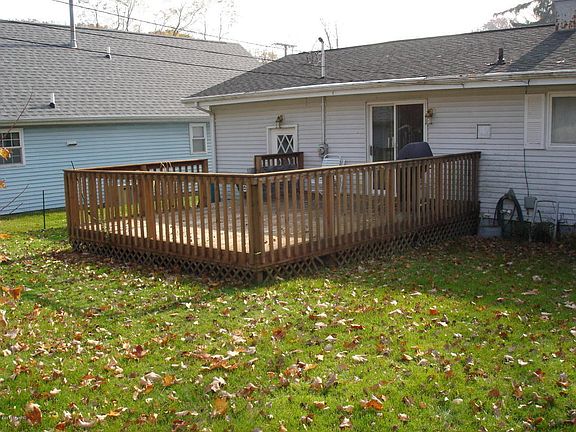 "Newer" home built in 1956 but was totally rebuilt in 1994 and updated in 2017. Main floor has hardwood running through the living rooms and the homes three (3) bedrooms. Also full bath and eat in kitchen on the main level as well. Full finished basement with a bar, sunken family room, electric fireplace and second full bath. Has an oversized deck off the kitchen. Large backyard is fully fenced. Attached garage. Access to the ally from the backyard.