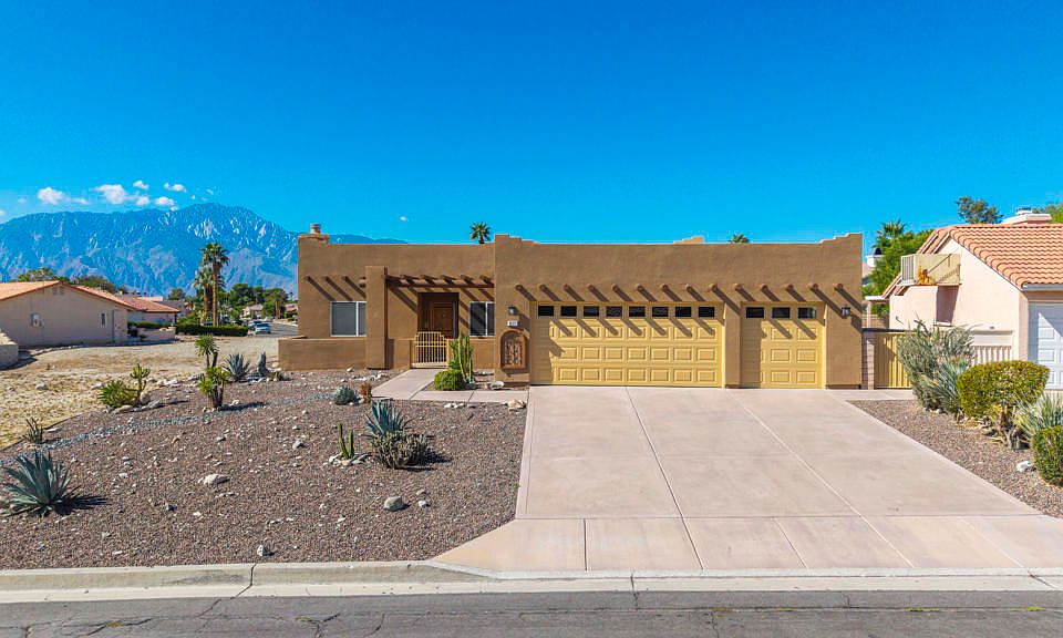 Welcome to 9271 Brookline, DHS, Highly desirable 4 bedroom, 2 bath. This beautiful maintained and modernized property is a showstopper! Absolutely stunning complete with a unobstructed Panoramic Mountain View. The home has been beautifully redone to perfection! Quartz Kitchen counters, Newer appliances, Recess lighting, Custom Ceiling fans and new Blinds thru-out, All new flooring, Freshly painted, Beautiful Baseboards, Fireplace, New Faucets thru-out, Newer roof (2 yrs old), Gorgeous 3 car garage, with New Doors. Super nice low Maintenance desert landscaping. This is a must see incredible opportunity in the hightly sought after Mission Lakes Country Club on the Northside of DHS with AMAZING MOUNTAIN VIEWS, a semi-private 18-hole championship 'Ted Robinson' DESIGNER GOLF COURSE, onsite pro shop and a MASSIVE CLUBHOUSE adjacent to the enormous pool with dual spas, professional tennis courts, modern fitness center, beautiful banquet room, fine dining area, maned bar, and the casual Sand Wedge Cafe. The LOW MONTHLY HOA fee includes UNLIMITED GOLF for two owners. Located just minutes from downtown Palm Springs, the I-10 Freeway, and the Palm Springs International Airport. THIS PROPERTY IS PRICED TO SELL AND WILL NOT LAST!