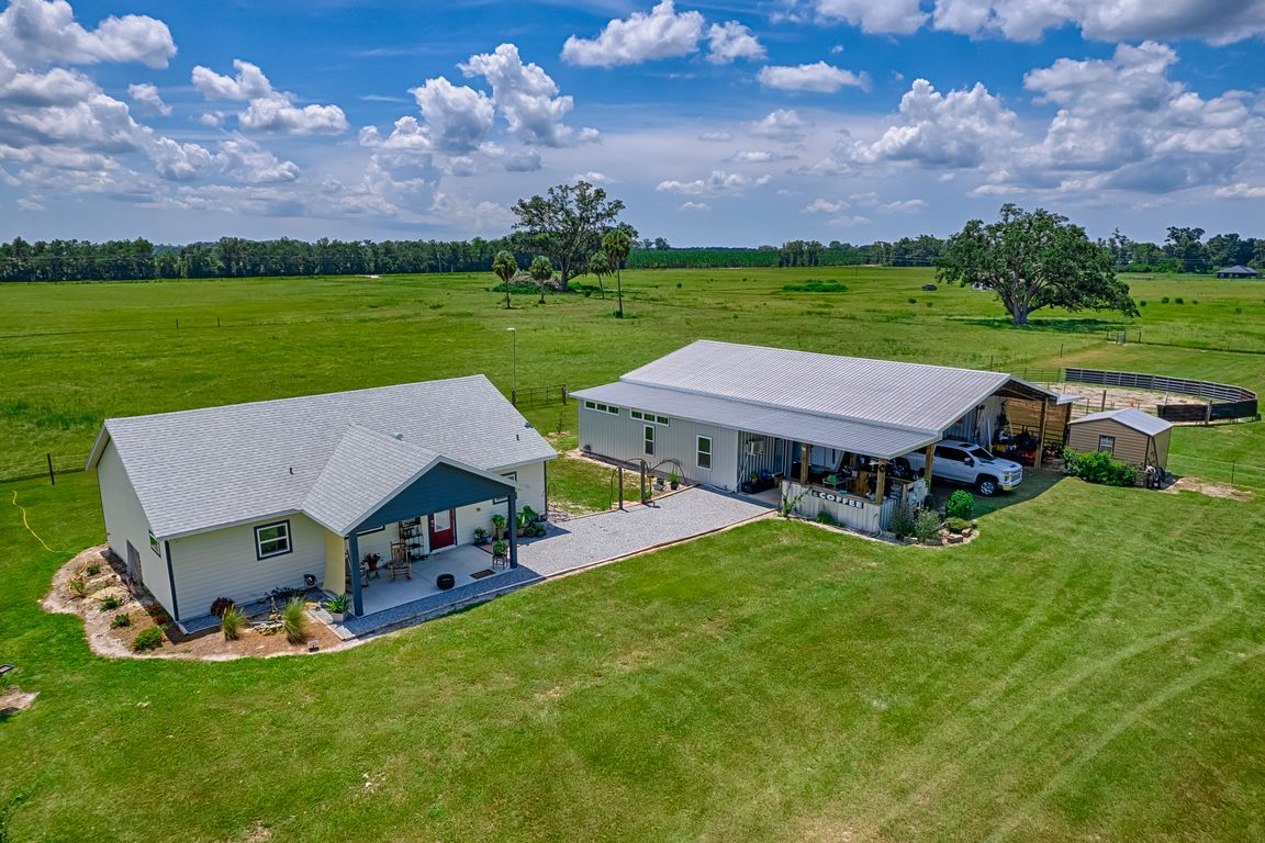 HUGE $25k price reduction! - CHIEFLAND, FLORIDA - BRAND NEW 2024 home on 20.24 acres with additional barn living quarters under expansive 60 x 65 foot pole barn FOR YOU AND YOUR HORSES OR CATTLE ~ Currently 3 stalls in place with tack room/workshop and TONS of extra room for additional ...