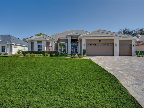 This stunning Lindhorst Harmony home sits right on the 17th tee of the award-winning Glen Lakes golf course! Recently remodeled, this beauty boasts serious curb appeal from the tile roof and newer brick pavered driveway all the way to the solar heated pool and spa. Through the double door entry, you'll find a well-appointed open floor plan with living and dining rooms. This home is bursting with fine details, including crown molding throughout, newer plantation shutters and window treatments, and fresh interior paint and new baseboards in the main living areas. Gather round the stone accented gas fireplace and built-in shelving in the living room on cooler evenings, or gather the whole family for game night! Cooks will adore the gourmet kitchen, which was taken down to the studs and completely redone with wood cabinets, stone counters, huge sink, and chic backsplash. It also boasts a huge pantry and a gorgeous stainless steel appliance suite that includes a cooktop range and hood, a built-in oven and microwave, and a wine fridge! The master suite is spacious and private with lovely updated laminate flooring and an enormous walk-in closet. The master bath was also taken down to the studs and completely remodeled with a new dual sink vanity, designer light fixtures, and new faucets to compliment the large garden tub and eye-catching shower with its exquisite stone detailing and stained-glass window. The second guest bedroom has dual closets for plenty of storage, as well as a charming window seat. It also has a direct door leading to the guest bath, making it a potential in-law suite. The guest bath has been upgraded with a new vanity, new lights, and new faucets, too. The third guest bedroom has lovely French doors and a sizable closet. Glass sliding doors in the living room open to reveal an outdoor space that's just as elegant as the interior with brick pavers and a screen enclosure with new screws. Sip on your coffee, tea, or wine as you enjoy the golf course views from the comfort of your covered lanai. The in-ground pool with a new solar heating system means you can enjoy the water year-round. In addition, there's also a 2018 Trane AC unit with a 10-year warranty, a new water heater, and a newer whole house water softener and filtration system. Fresh exterior paint includes the gutters and soffit; it compliments the new curbing around the entire house and the upgraded landscaping. Glen Lakes is a premiere gated golf community featuring 24/7 security, a championship golf course, pro shop, clubhouse, restaurant, Jr-Olympic sized community pool, fitness center, sports courts, and so much more. Conveniently located just off US-19, you'll have easy access to Homosassa, Tarpon Springs, and Clearwater. This home is also less than 5 miles away from Weeki Wachee Springs State Park with its watercraft launch, water slides, and famous mermaid show! Tons of shopping and dining options are available, and local schools are only a short drive away. There isn't another home like this on the market, so be sure to see it before it goes!