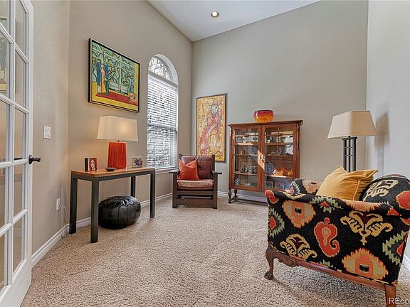 This stunning upscale end unit townhouse sits perfectly in the center of the sought-after Tresana community in Highlands Ranch. Inside youll find an off entry office featuring glass doors and12-foot ceilings, accompanied by a full guest hallway bathroom, laundry room, and garage access. The main floor boasts a spacious and open great room with dramatic two-story ceilings, a gas fireplace, and abundant windows on both sides that flood the space with natural light. The modernized kitchen impresses with its slab granite countertops, a stylish eat-in island adorned with pendant lighting, newer stainless steel appliances, espresso-colored cabinetry with under-cabinet lights, double ovens, and a gas cooktop and a formal dining space. Outside, a partially covered patio with an under deck drainage system and stucco wall enclosure offers ample room for grilling and unwinding in a serene environment. Upstairs, the primary suite awaits with a luxurious 5-piece bathroom, slab quartz counters, a walk-in closet with custom built-ins, and a deep soaking tub. Enjoy your morning coffee on the private second-story deck off the primary suite. The upper level also includes two additional bedrooms, connected by a full Jack and Jill bathroom with dual vanities and slab counters. The attached 2-car garage comes complete with sealed epoxy flooring. Residents of Tresana enjoy access to a pool, hot tub, scenic walking trails, open spaces, recreation centers, and proximity to shopping and dining. This move-in-ready gem is ready to become your new home! Walk the property now! https://my.matterport.com/show/?m=qtHAj1VvizQ
