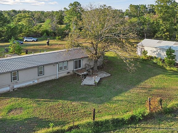 Looking for a homestead?! House~ Shop~ 5 Acres M/L! Nice Modular 2 bedrooms, 1 bath home w/ metal roof. Extra room has been used as a 3rd bedroom but does not have a closet. Extra room can be utilized as an office or hobby room. Kitchen is open to 2nd living room or dining room. Spacious living room has gas insert fireplace. Home has been updated with ceramic tile countertops, built in microwave and real wood floors. Bathroom has jetted jacuzzi tub. 30x40 Metal shop. Lots of beautiful tree's and wildlife to enjoy. Property is being sold as is, where is and only eligible for conventional loan. Access to driveway has easement. GPS does not map correctly, street is located on south side. Approx 1/4 mile of dirt road to home.