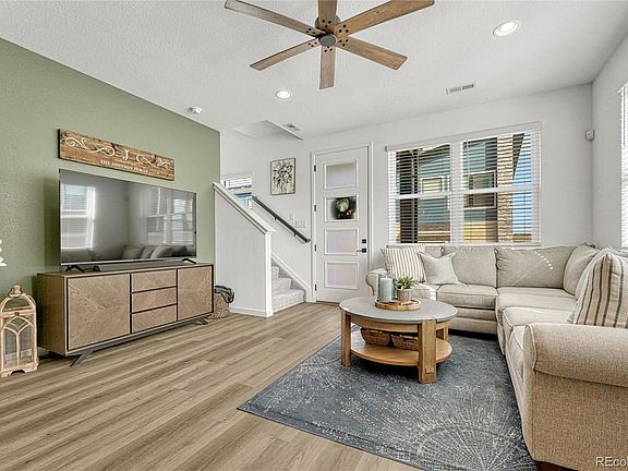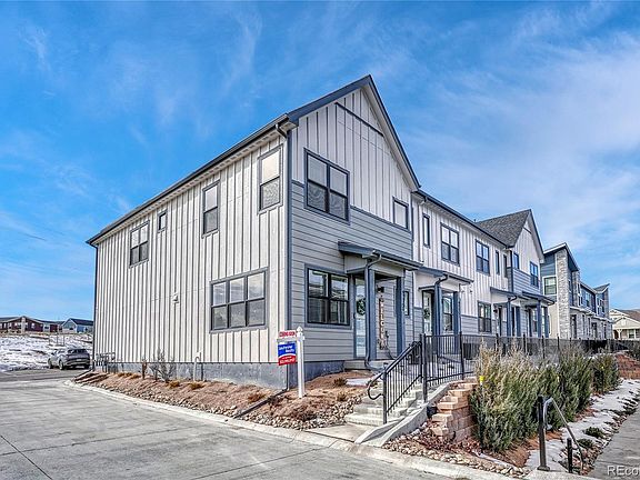 PRICE REDUCTION!!   COME SEE this MOVE-IN READY end unit townhome, in desirable Sterling Ranch Community!  This Better than New Two-story Open Concept plan features 9' ceilings, Living Room, Kitchen with gas range, vent hood, large quartz island, pantry and eat-in dining.  The main area includes a half bathroom and utility/storage room where you can access the extra storage in crawlspace.  Upstairs, you'll find a master suite with 5-piece bath and walk-in closet, 2 additional bedrooms, full bath with double vanity and laundry. There is plenty of visitor parking behind this unit.  Smart-home features Fiber Internet with additional gig speed, DSC Security Monitoring system and Steward Smart Home Automation for remote control of your devices.  Green Features include solar panels and an electric car charger in garage.  Enjoy amazing community amenities and access to 30 miles of trails right outside your front door.