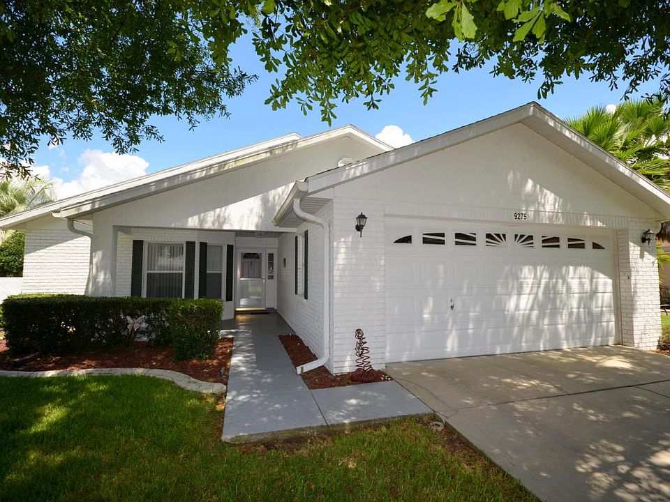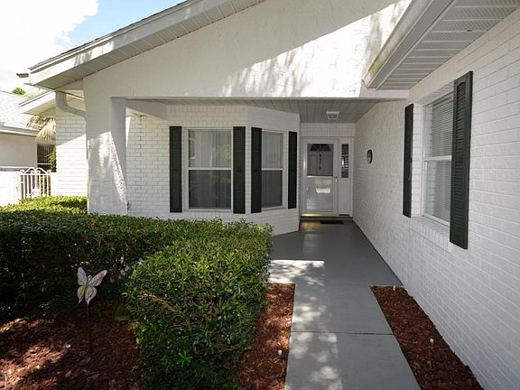 Spacious Madison model home located in the Williamsburg neighborhood of the sought-after 55+ gated, golf community of On Top of the World. When you enter this home you'll find vaulted ceilings throughout with a split bedroom plan. Upgrades include new countertops, backsplash, sink and appliances in the kitchen 2019, and countertops in both baths 2019, flooring 2020, carpet with upgraded pet protectant 2020, washer/dryer 2018, newer Roof 2014, and newer HVAC 2017. Freshly painted throughout. Custom Murphy Bed system in the guest room. The private courtyard spanning the length of the home on one side offers spacious outdoor living space, as well as a finished lanai with greenspace views out back. Large kitchen with table space. This home is move-in ready and some furniture is for sale outside of the purchase of the home.
