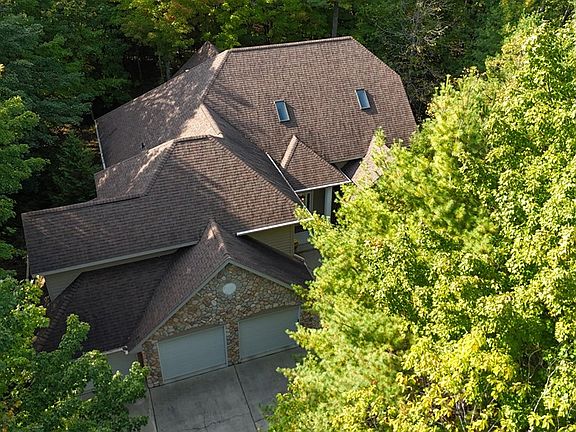Corner stone fireplaceThree-car attached garageOpen concept kitchenExtended bayWall of windowsSoaring ceilingsSolid surface countertops