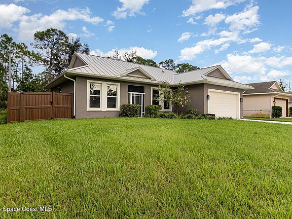 Welcome to Vero Lake Estates! This stunning three-bedroom, two-bathroom concrete block residence is designed for comfortable living and entertaining. This home offers a spacious eat- in kitchen, stainless steel appliances, tile flooring throughout, new interior paint throughout, 85-120ft well; 3 years old, metal roof with mylar sheet barrier; 3 years old, Irrigation 4 zone system with app, hybrid water heater 50 gal; 2 years old, a murphy bed in one of the bedrooms, a second refrigerator in the garage, along with a washer and dryer, and large attached safe. Outside you'll discover a large, screened patio and backyard, completely enclosed by a charming wood grain vinyl fence, perfect for privacy and outdoor activities. The location is unbeatable, with shopping, dining, schools, and more just moments away. This Vero Lake Estates gem combines comfort, functionality, and style, making it the perfect place to call home.