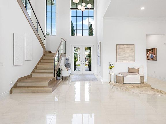 Experience High End Luxury Living in this fully furnished, highly desirable Palermo Model Home in the exclusive gated community of Boca Bridges. A home like this does not come along often and shows even better than a Model! Furnished throughout by Artefacto, Restoration Hardware, Arhaus and more, this listing shows beautifully! This stunning home features water views, 6 true bedrooms, 8 bathrooms, a Movie Room, a loft, a 4 car air conditioned garage, a fully turfed extra large backyard with gorgeous pool, 2 laundry rooms, a gourmet chef's kitchen with an extra long waterfall island, 60 inch Subzero Fridge and 2 dishwashers! This unique home features beautiful custom flooring throughout which was installed after closing and not through the builder. The first floor features 24 x 48 large format porcelain tiles, while the lower guest bedroom, movie room, and the entire second floor feature 10.5 inch wide light oak wood flooring. Every corner of the home was thoroughly crafted and carried out in the most designer-appointed way. This home will delight even the most discerning buyer. The generously sized yet private backyard was curated to perfection from every angle with its oversized "Hamptons Style" pool, custom gas bbq area, Restoration Hardware outdoor furnishings, and expansive, fully turfed lawn. Enjoy long lake views and gorgeous "cotton candy skies" every evening from your very own South/West facing backyard! For Privacy, This home is outfitted with high-end window treatments and automated shades throughout. You really have to see this home to believe it! No expense was spared.