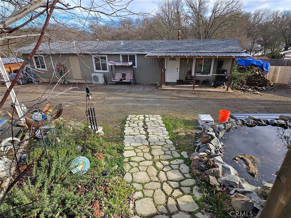 Welcome home! Two lots with this included, a little under an acre combined, Just past lower lake high school and within walking distance, this property has everything you could desire at a great price! highly desirable location, close to town and schools, dining, and amenities. Pulling up a quiet street to the easy paved off-road parking, a beautiful wooden fence and garden shed protect the property. Two gates, one with an automatic opener, make it easy to pull anything onto your expansive, over an acre, fully fenced in yard. A beautiful double-level Koi pond and adorable home await inside! Newer manufactured 1996 home has 433A cert on file, and has been remodeled. Walking inside from the front covered porch, you are greeted by vaulted ceilings amplifying the living space, and a cozy wood stove. Mini-splits for convenient and efficient heat and air. The open kitchen has beautiful granite countertops, large stainless steel sink, and electric range. Beautiful oak cabinets provide ample storage, and large pantry. Further into your new home, you will be delighted with your updated bathroom and tiled-in tub. New tile floors in bathroom, laminate throughout the rest of the home. The bedrooms are spacious and the primary bedroom at the end of the hall has its own entrance to the yard. New double pane vinyl windows throughout the entire home. New siding on exterior, and new back deck. Covered both in the back and front, there is plenty of space to enjoy outside living and a view of the bright green, grassy hill and trees behind the home. The backyard is very private due to how the lots in the area are generously laid out. Plenty of room for animals and toys! The two car garage in the back is equipped for fabrication or welding projects, perfect for the handyman of the house or mechanic. Newer roof on home is approximately 5 years old. Water tanks that feed irrigation system to fenced in veggie garden can stay with the property. Easy maintenance and graveled yard. Come see this one and make it your dream home before its gone! Special financing available for this manufactured home.