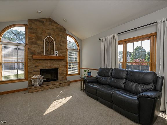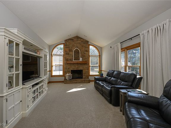 Tucked away on a quiet cul-de-sac in the desirable Saint Ives neighborhood, this former Mohler Parade Home showcases timeless craftsmanship paired with modern updates. The etched glass sidelights and transom-framed front door open into a welcoming foyer accented with hardwood floors and crown molding. Oversized windows fill the formal living and dining rooms with natural light, while the dining room’s trayed ceiling adds an elegant touch. The spacious kitchen offers abundant cabinetry, generous counter space, a pantry, and stainless steel Frigidaire appliances. A bayed dinette with DuraCeramic flooring flows out through sliding glass doors to a large composite deck overlooking the private backyard. The vaulted family room is a showpiece, featuring walls of windows and a dramatic floor-to-ceiling stone fireplace. A private office with a cozy window seat and a convenient first-floor laundry complete the main level. Upstairs, retreat to the primary suite with a walk-in closet, soaking tub, and walk-in shower. Three additional bedrooms, each with double closets, provide plenty of space for family and guests. The full basement offers endless potential for finishing to your taste.