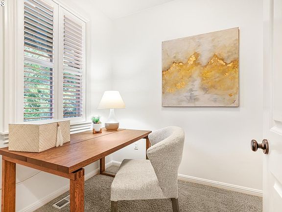 Raleigh Hills / Garden Home beauty with fresh updates! What a find in WA county with a Portland address! Beautiful oversized lot on a quiet, non through street with easy access to the freeway, multiple golf courses, shopping malls, Multnomah Village, as well as the gorgeous Fanno Creek Trails. Open flow floor plan features all new interior paint, quality finishes, high ceilings, plantation shutters and hand-scraped engineered hardwood floors. Office area adjacent to the foyer and Chef's kitchen with granite counters, island, stainless appliances and a huge pantry! Eating nook has slider overlooking the entertaining deck and oversized yard. Spacious great room has a lovely gas fireplace and lush carpet. Upstairs has 3 large bedrooms including a vaulted primary suite with sitting area (or space for your favorite exercise machine / 2nd office?). Ensuite bath off the primary has individual tiled vanities, walk in closet and soaker tub. Convenient utility room and hall bath complete the upstairs. Private zen-like fenced backyard with deck, rock garden, blueberries, apples, fig, crushed rock pathways and handy utility shed. Oversized finished 2 car garage for all the toys!