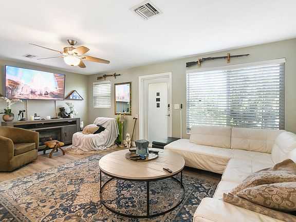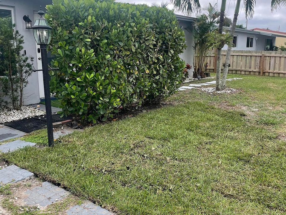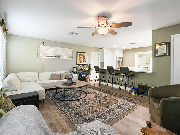 Enjoy comfortable living in this cozy home featuring a stylish kitchen with quartz counter tops & ample cabinetry,  modern updated bathrooms,  a large family/dining room, laminate flooring throughout, metal roof, impact windows and a newer a/c. Plus a separate laundry room, a covered, screened patio and the property is completely fenced. Third bedroom has no closet. No HOA. Ideally located in Palm Beach Gardens close to shopping,  restaurants and freeways.