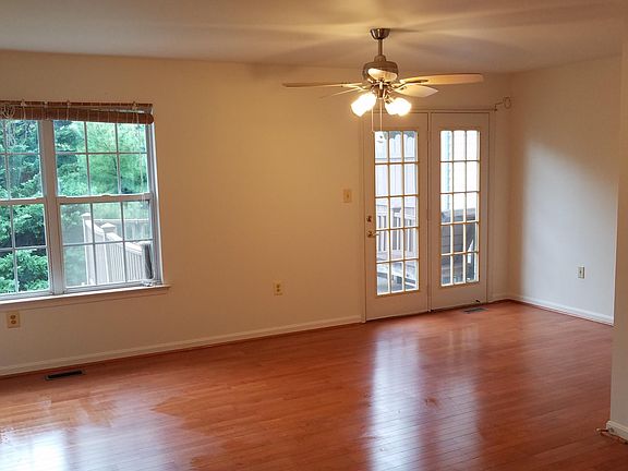 Carpet in all bedrooms. 3 bedroom 2.5 bathroom townhouse located on a low traffic circle, yet convenient to highway, a few minutes drive to Frederick City and Fort Detrick (20 minute commute). Walking distance (4 blocks) to community pools, tennis courts, walking trails, supermarket, restaurants, dry cleaner, and Anytime Fitness gym. Living room has ceiling fan, French door access to deck, and stairs to walk-out basement to patio. Master bedroom has ceiling fan, walk-in closet, and full master bathroom. House has central heat and A/C, cable-ready. Owner provides large refrigerator, dishwasher, and stove in kitchen, full size washer & dryer (all electric) with partial use of partially finished basement. Playground across the street. Summer pool use, trash pickup, and 2 reserved parking spaces included in price. Non-smokers only.