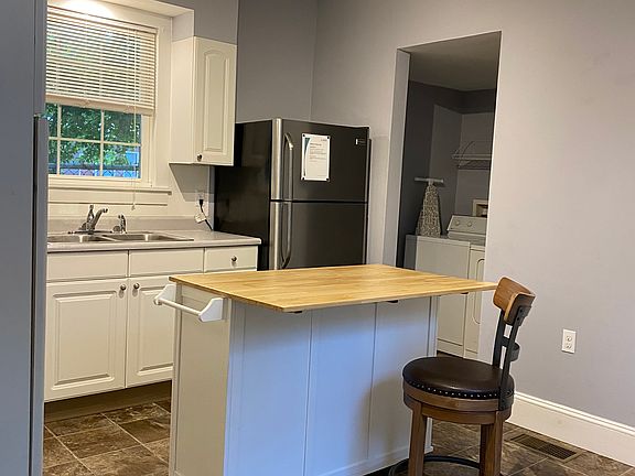 Located on the border of campus this dreamy location is impossible to resist. Three-bedroom, fully furnished home. Welcome to on-campus distance with off-campus options. The large living room gets a lot of sun for the sun worshipers, but blinds are in every window for those not in favor of light. Watching your favorite movie couldn't be better: comfy chairs, sectional, ottoman, tables, lamps, smart TV, and media stand. The adjoining dining area has a table & seating for four and is within eyeshot of the TV. The kitchen, with bright white cabinetry and modern lighting, has a gas stove/oven, refrigerator, and microwave. The free-use washer and dryer are tucked away next to the kitchen in the laundry room. Two full baths, including tubs, are impressively grand in size. Upstairs, with wall-to-wall carpeting, are the three keyed locked bedrooms and the second full bath. Each bedroom comes to you with a closet, full-sized bed, dresser, side table, and lamp. The large, fenced yard, ideal for small campfires, makes this city home feel like the county. Off-street parking and all utilities, but cable, are included. Enjoy your lazy days on the side porch of this patch of heaven. SUMMER LEASING AVAILABLE